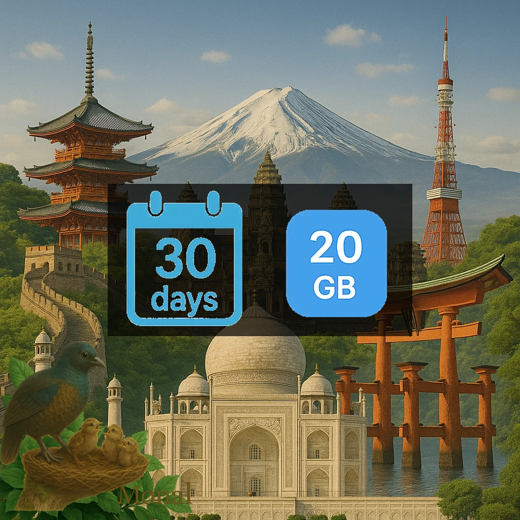 Get 20 GB of high-speed data for your travel needs. Great for multi-country travel including Australia, Cambodia, China mainland and 2 more destinations. Valid for 30 days once activated. You have 180 days to activate after purchase. Enjoy 3G/4G/5G network speeds for fast and reliable connectivity. Connects via premium networks including 3, AirTel, CelcomDigi for the best coverage. Supports top-up options to extend your data when needed. Instant delivery via email - no physical SIM required. Simply scan the QR code to get connected.