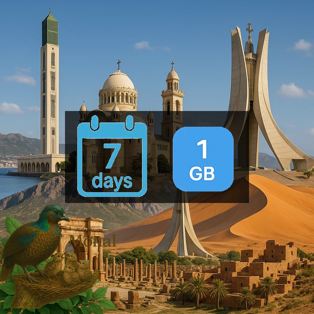 Algeria 1GB 7Days Get 1 GB of high-speed data for your travel needs. Perfect for travel in Algeria. Valid for 7 days once activated. You have 180 days to activate after purchase. Enjoy 3G/4G network speeds for fast and reliable connectivity. Connects via premium networks including Mobilis, Ooredoo for the best coverage. Supports top-up options to extend your data when needed. Instant delivery via email - no physical SIM required. Simply scan the QR code to get connected.
