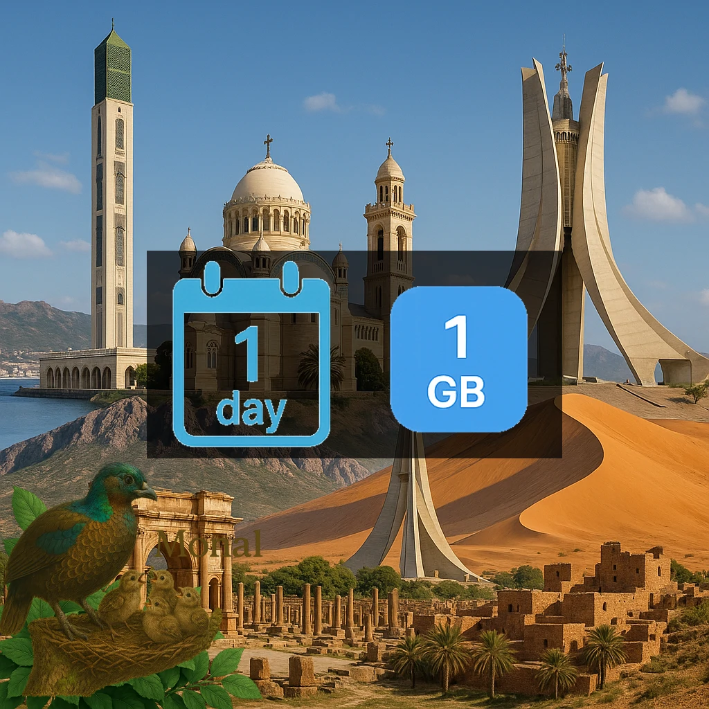Algeria 1GB/Day Get 1 GB of high-speed data for your travel needs. Perfect for travel in Algeria. Valid for 1 day once activated. You have 180 days to activate after purchase. Enjoy 3G/4G network speeds for fast and reliable connectivity. Connects via premium networks including Mobilis, Ooredoo for the best coverage. Supports top-up options to extend your data when needed. Instant delivery via email - no physical SIM required. Simply scan the QR code to get connected.