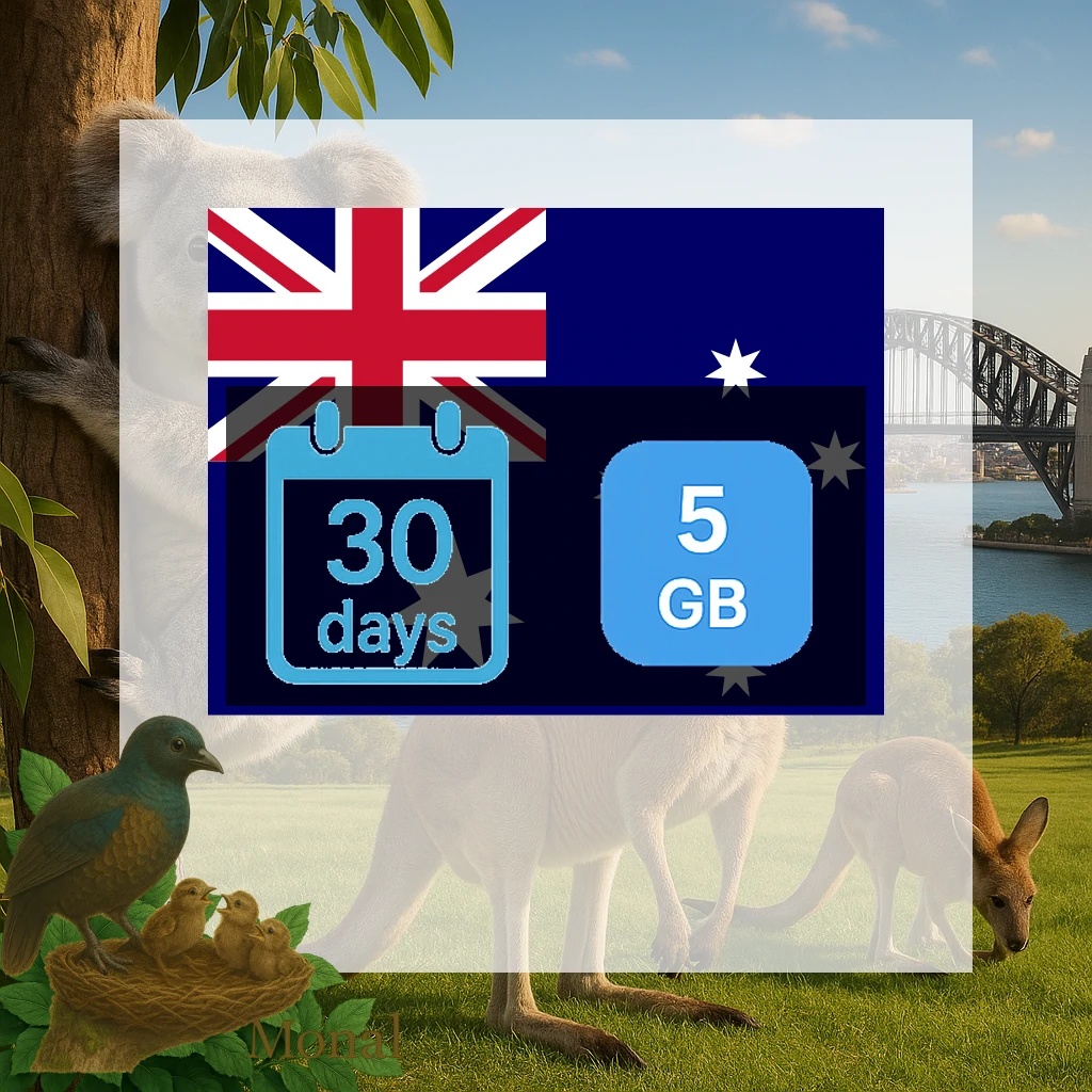 Australia 5GB 30Days Get 5 GB of high-speed data for your travel needs. Perfect for travel in Australia. Valid for 30 days once activated. You have 180 days to activate after purchase. Enjoy 3G/4G/5G network speeds for fast and reliable connectivity. Connects via premium networks including Optus, Vodafone for the best coverage. Supports top-up options to extend your data when needed. Instant delivery via email - no physical SIM required. Simply scan the QR code to get connected.