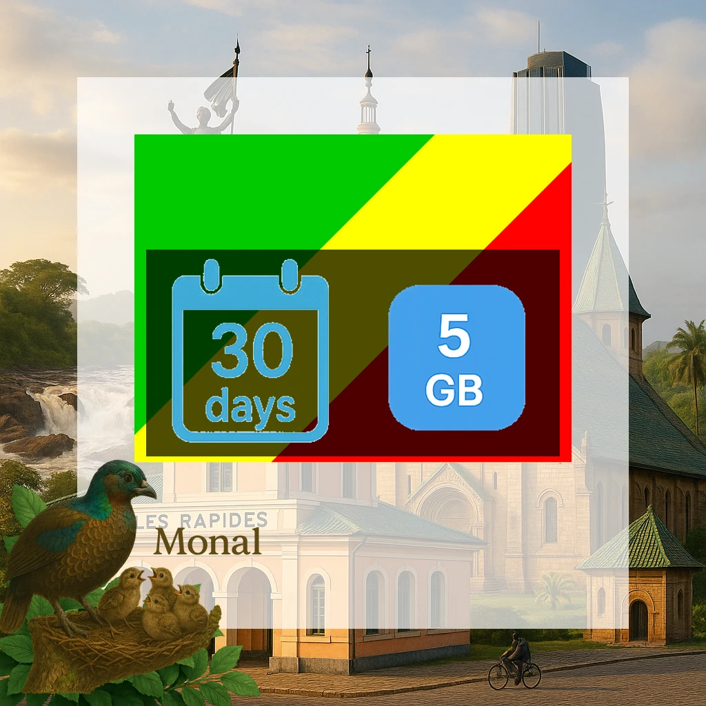 Republic of the Congo 5GB 30Days Get 5 GB of high-speed data for your travel needs. Perfect for travel in Republic of the Congo. Valid for 30 days once activated. You have 14 days to activate after purchase. Enjoy 3G/4G network speeds for fast and reliable connectivity. Connects via Airtel network for reliable coverage. Supports top-up options to extend your data when needed. Instant delivery via email - no physical SIM required. Simply scan the QR code to get connected.