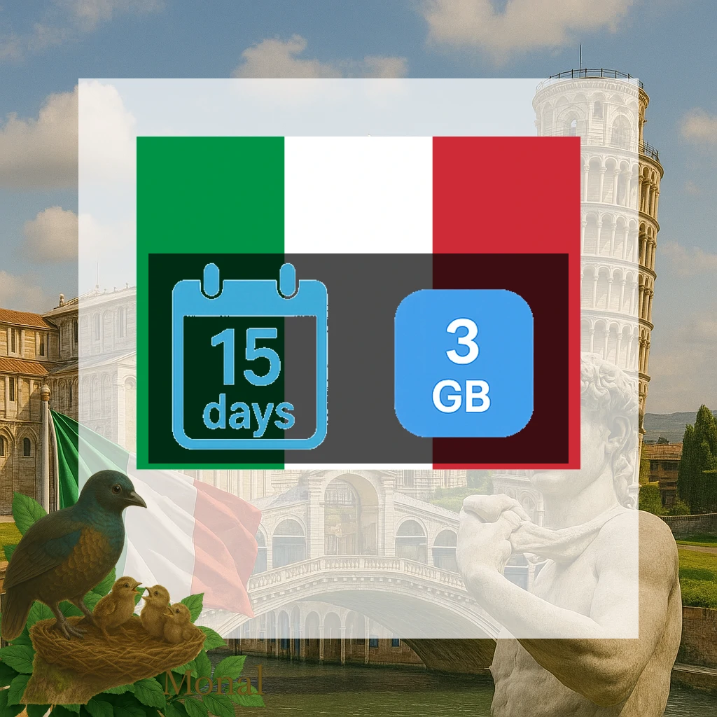 Italy 3GB 15Days Get 3 GB of high-speed data for your travel needs. Perfect for travel in Italy. Valid for 15 days once activated. You have 180 days to activate after purchase. Enjoy 3G/4G/5G network speeds for fast and reliable connectivity. Connects via premium networks including Vodafone, Wind for the best coverage. Supports top-up options to extend your data when needed. Instant delivery via email - no physical SIM required. Simply scan the QR code to get connected.