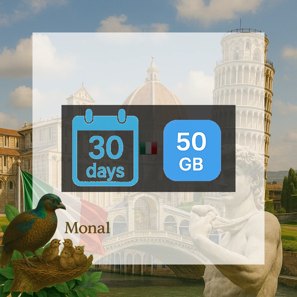 Italy 50GB 30Days Get 50 GB of high-speed data for your travel needs. Perfect for travel in Italy. Valid for 30 days once activated. You have 14 days to activate after purchase. Enjoy 3G/4G network speeds for fast and reliable connectivity. Connects via premium networks including Vodafone, Wind for the best coverage. Supports top-up options to extend your data when needed. Instant delivery via email - no physical SIM required. Simply scan the QR code to get connected.