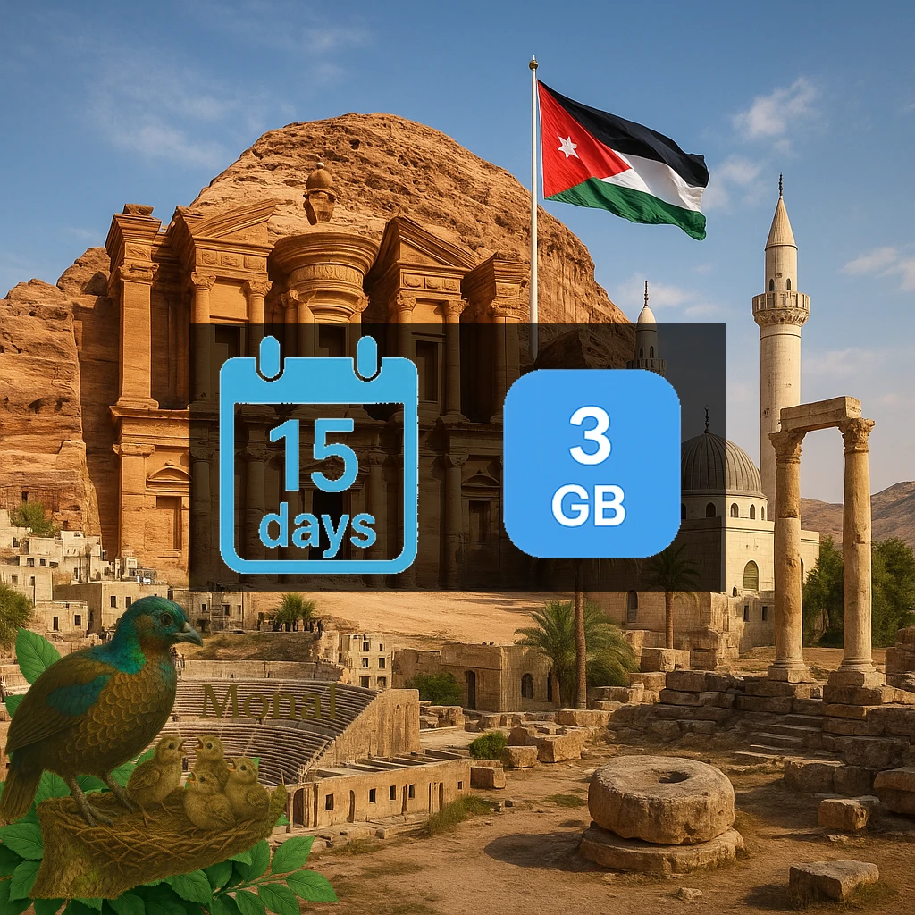 Jordan 3GB 15Days Get 3 GB of high-speed data for your travel needs. Perfect for travel in Jordan. Valid for 15 days once activated. You have 180 days to activate after purchase. Enjoy 3G/4G/5G network speeds for fast and reliable connectivity. Connects via premium networks including Umniah, Zain for the best coverage. Supports top-up options to extend your data when needed. Instant delivery via email - no physical SIM required. Simply scan the QR code to get connected.