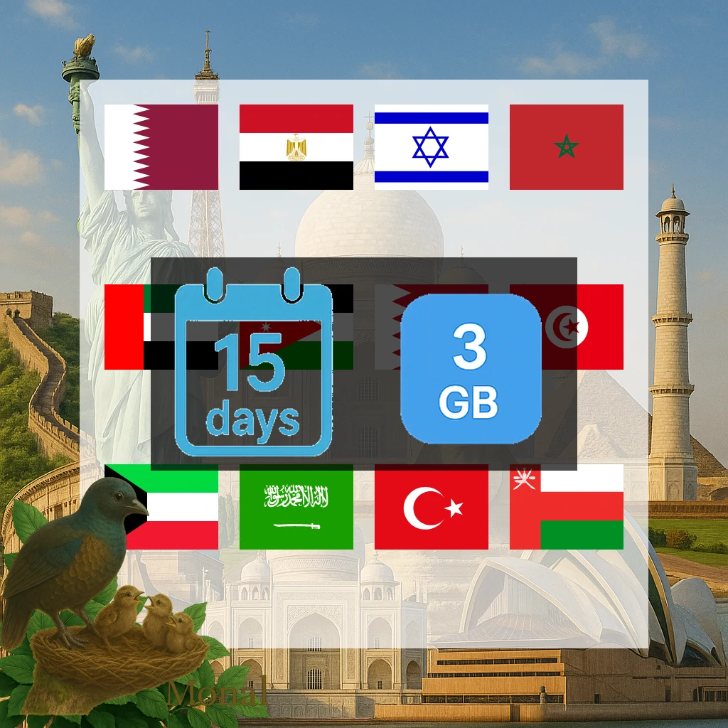 Get 3 GB of high-speed data for your travel needs. Great for multi-country travel including Bahrain, Egypt, Israel and 2 more destinations. Valid for 15 days once activated. You have 14 days to activate after purchase. Enjoy 3G/4G/5G network speeds for fast and reliable connectivity. Connects via premium networks including Etisalat, Hot Mobile, Mobily for the best coverage. Supports top-up options to extend your data when needed. Instant delivery via email - no physical SIM required. Simply scan the QR code to get connected.