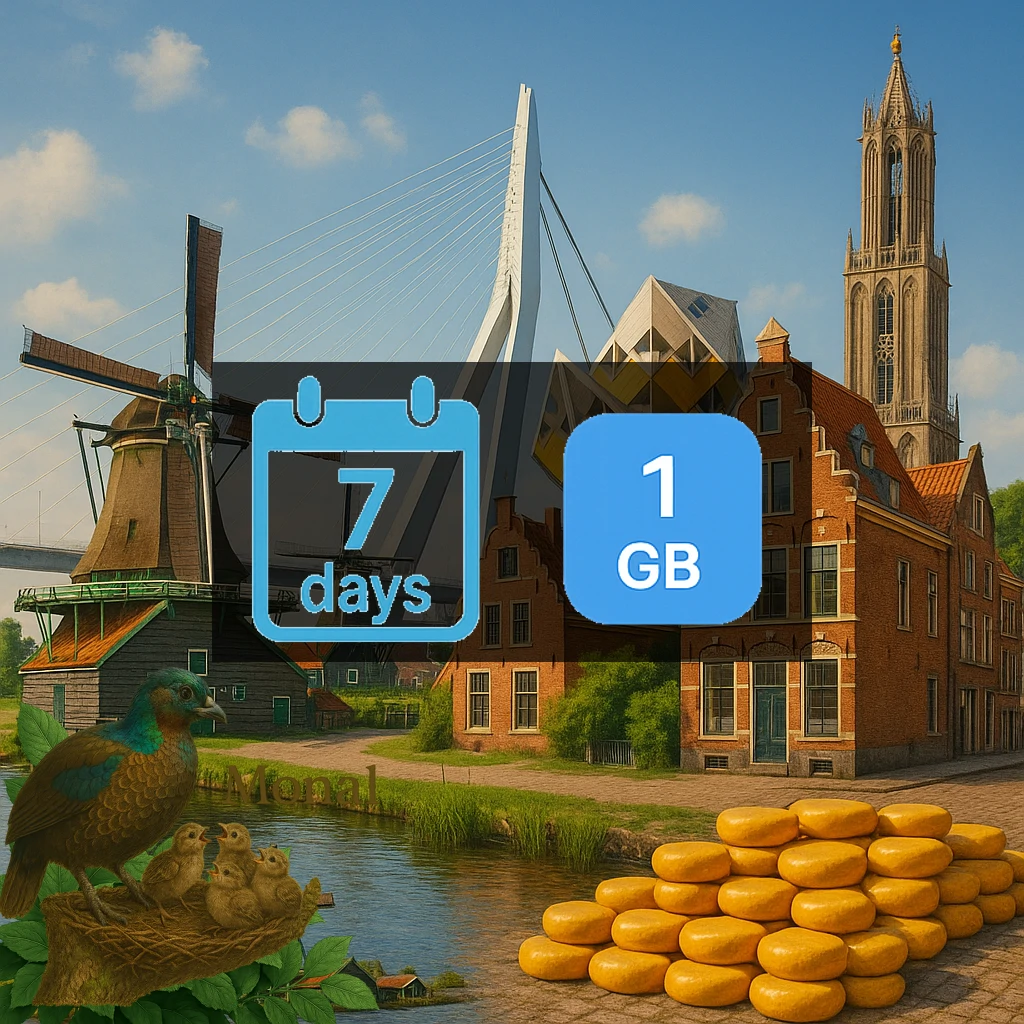 Netherlands 1GB 7Days Get 1 GB of high-speed data for your travel needs. Perfect for travel in Netherlands. Valid for 7 days once activated. You have 14 days to activate after purchase. Enjoy 3G/4G/5G network speeds for fast and reliable connectivity. Connects via premium networks including KPN, Vodafone for the best coverage. Supports top-up options to extend your data when needed. Instant delivery via email - no physical SIM required. Simply scan the QR code to get connected.