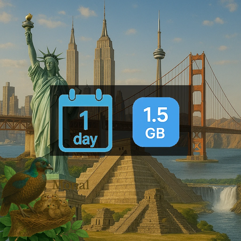 North America 1.5GB/Day Get 1.5 GB of high-speed data for your travel needs. Ideal for travel across Canada, Mexico and United States. Valid for 1 day once activated. You have 180 days to activate after purchase. Enjoy 3G/4G/5G network speeds for fast and reliable connectivity. Connects via premium networks including Movistar, Rogers Wireless, Telcel for the best coverage. Supports top-up options to extend your data when needed. Instant delivery via email - no physical SIM required. Simply scan the QR code to get connected.