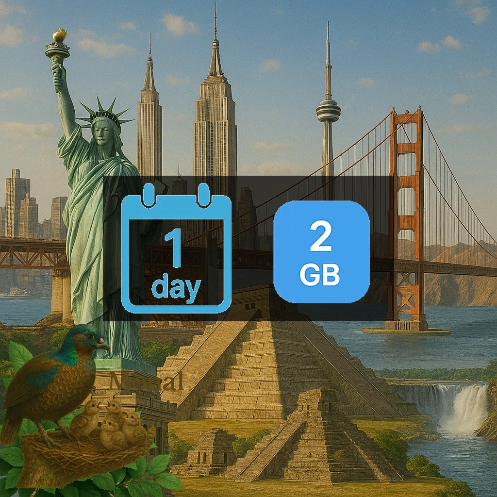North America 2GB/Day Get 2 GB of high-speed data for your travel needs. Ideal for travel across Canada, Mexico and United States. Valid for 1 day once activated. You have 180 days to activate after purchase. Enjoy 3G/4G/5G network speeds for fast and reliable connectivity. Connects via premium networks including Movistar, Rogers Wireless, Telcel for the best coverage. Supports top-up options to extend your data when needed. Instant delivery via email - no physical SIM required. Simply scan the QR code to get connected.