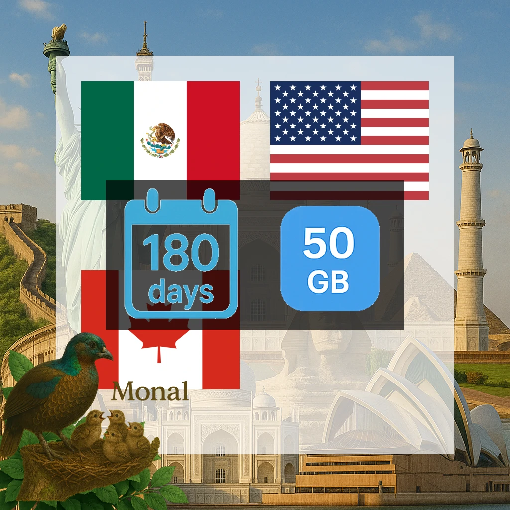North America 50GB 180Days Get 50 GB of high-speed data for your travel needs. Ideal for travel across Canada, Mexico and United States. Valid for 180 days once activated. You have 14 days to activate after purchase. Enjoy 3G/4G/5G network speeds for fast and reliable connectivity. Connects via premium networks including Movistar, Rogers Wireless, Telcel for the best coverage. Supports top-up options to extend your data when needed. Instant delivery via email - no physical SIM required. Simply scan the QR code to get connected.
