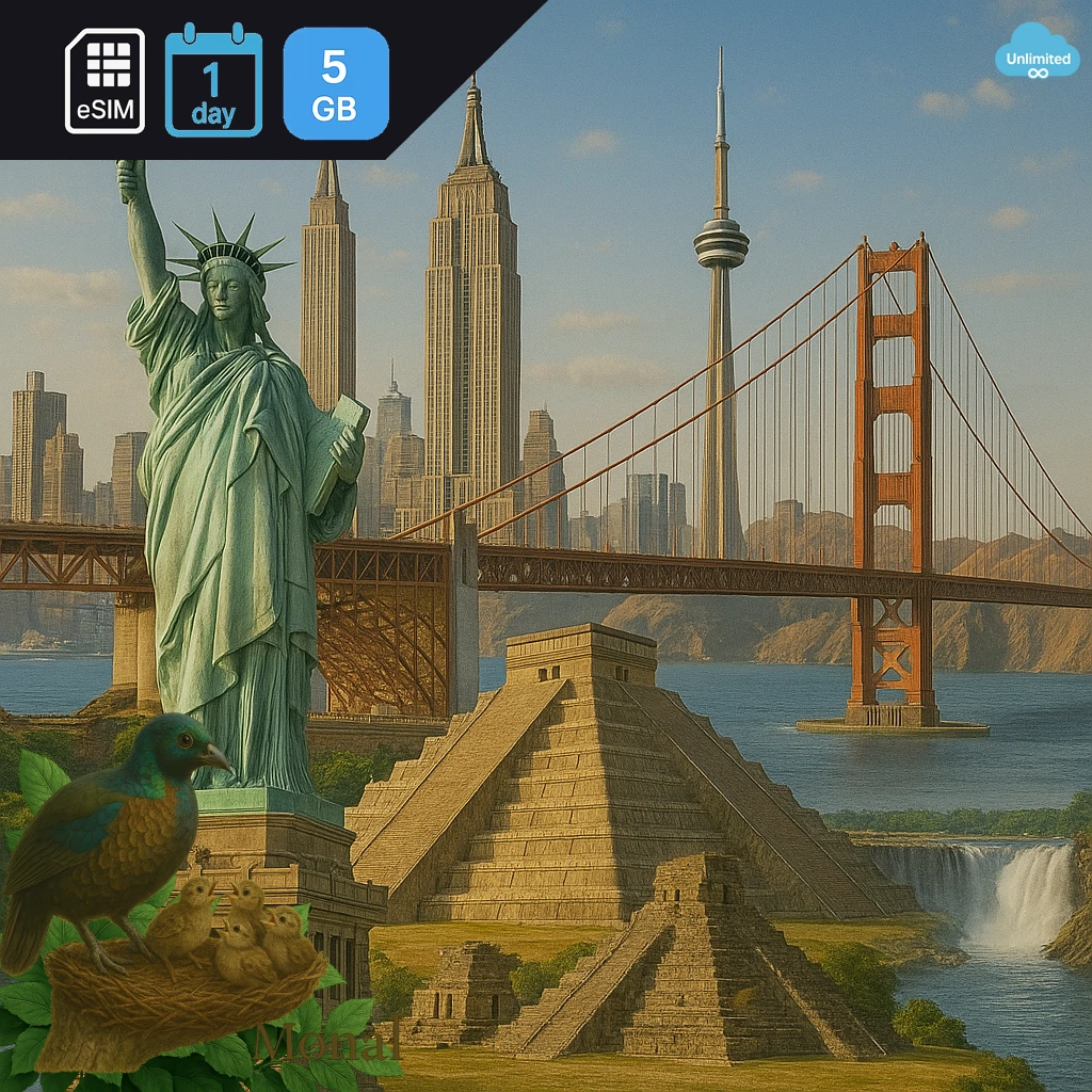 North America 5GB/Day Get 5 GB of high-speed data for your travel needs. Ideal for travel across Canada, Mexico and United States. Valid for 1 day once activated. You have 180 days to activate after purchase. Enjoy 3G/4G/5G network speeds for fast and reliable connectivity. Connects via premium networks including AT&T, Bell, Rogers Wireless for the best coverage. Supports top-up options to extend your data when needed. Instant delivery via email - no physical SIM required. Simply scan the QR code to get connected.