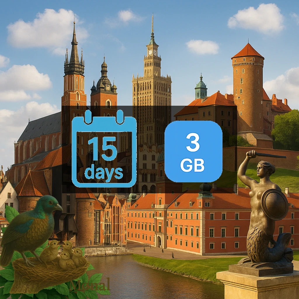 Poland 3GB 15Days Get 3 GB of high-speed data for your travel needs. Perfect for travel in Poland. Valid for 15 days once activated. You have 14 days to activate after purchase. Enjoy 3G/4G/5G network speeds for fast and reliable connectivity. Connects via premium networks including Orange, Play, Plus for the best coverage. Supports top-up options to extend your data when needed. Instant delivery via email - no physical SIM required. Simply scan the QR code to get connected.