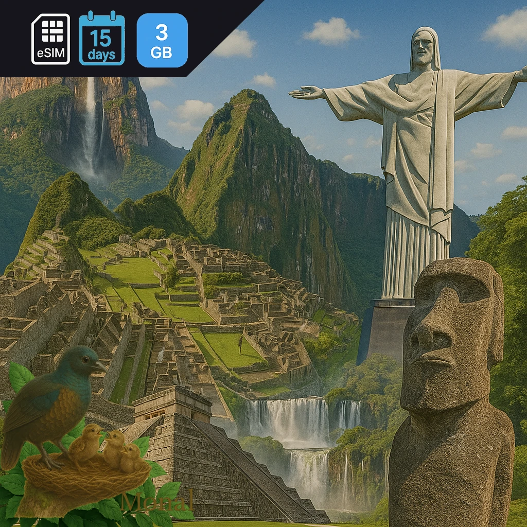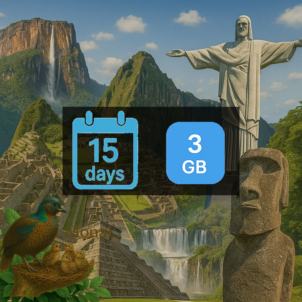 South America 3GB 15Days Get 3 GB of high-speed data for your travel needs. Great for multi-country travel including Argentina, Bolivia, Brazil and 2 more destinations. Valid for 15 days once activated. You have 180 days to activate after purchase. Enjoy 3G/4G/5G network speeds for fast and reliable connectivity. Connects via premium networks including Antel, Claro, Digicel for the best coverage. Supports top-up options to extend your data when needed. Instant delivery via email - no physical SIM required. Simply scan the QR code to get connected.
