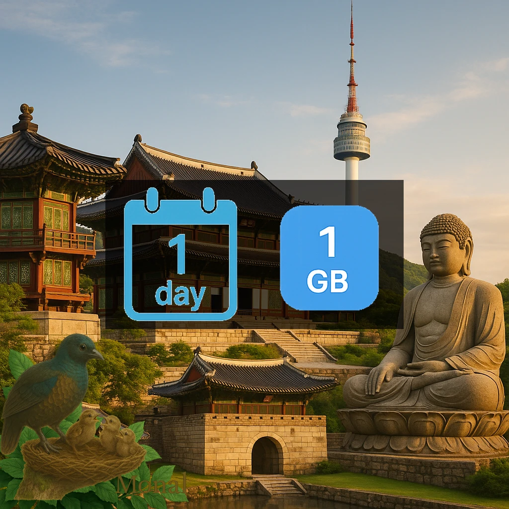 South Korea 1GB/Day Get 1 GB of high-speed data for your travel needs. Perfect for travel in South Korea. Valid for 1 day once activated. You have 180 days to activate after purchase. Enjoy 3G/4G/5G network speeds for fast and reliable connectivity. Connects via premium networks including LG U+, SKTelecom for the best coverage. Supports top-up options to extend your data when needed. Instant delivery via email - no physical SIM required. Simply scan the QR code to get connected.