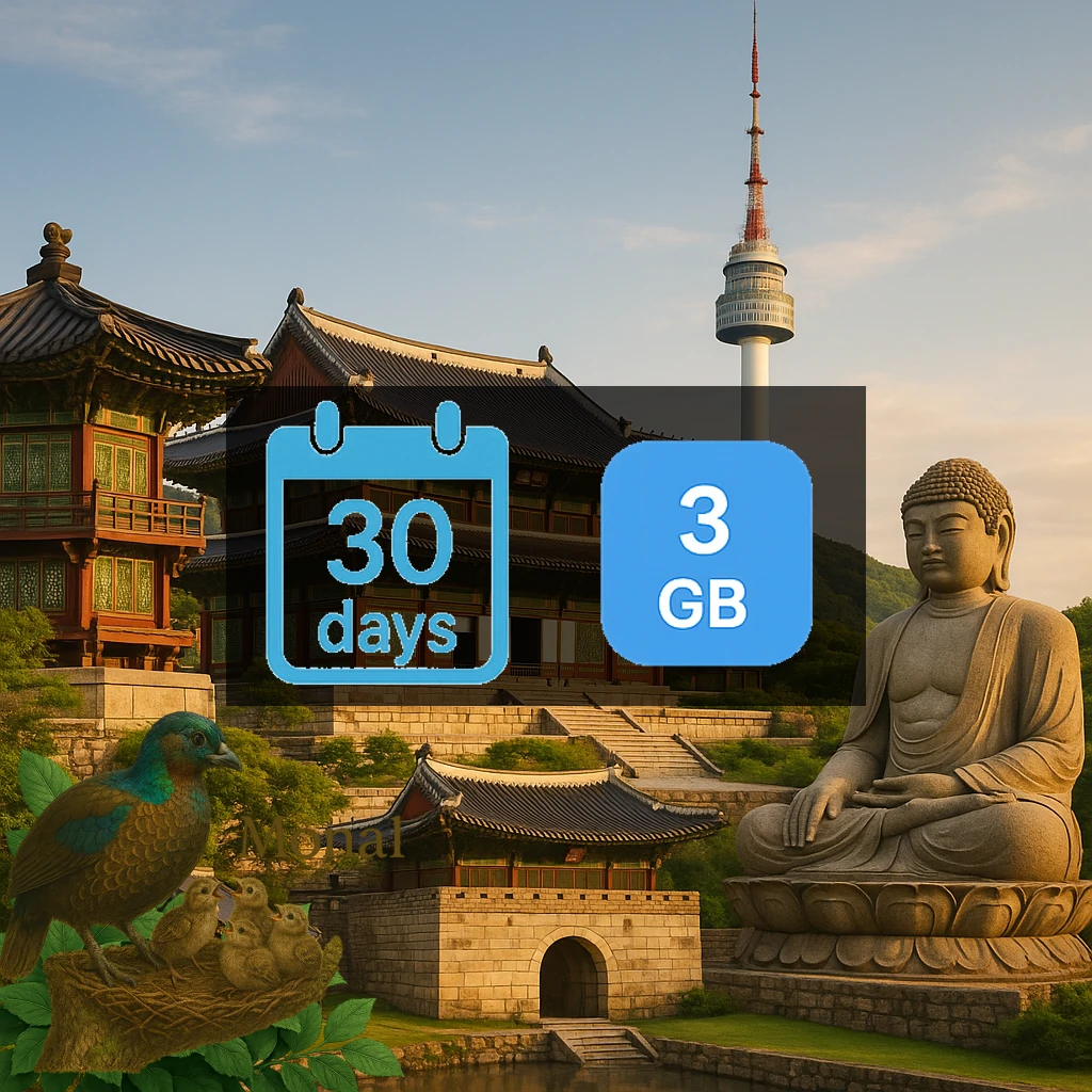 South Korea 3GB 30Days Get 3 GB of high-speed data for your travel needs. Perfect for travel in South Korea. Valid for 30 days once activated. You have 180 days to activate after purchase. Enjoy 3G/4G/5G network speeds for fast and reliable connectivity. Connects via premium networks including LG U+, SKTelecom for the best coverage. Supports top-up options to extend your data when needed. Instant delivery via email - no physical SIM required. Simply scan the QR code to get connected.