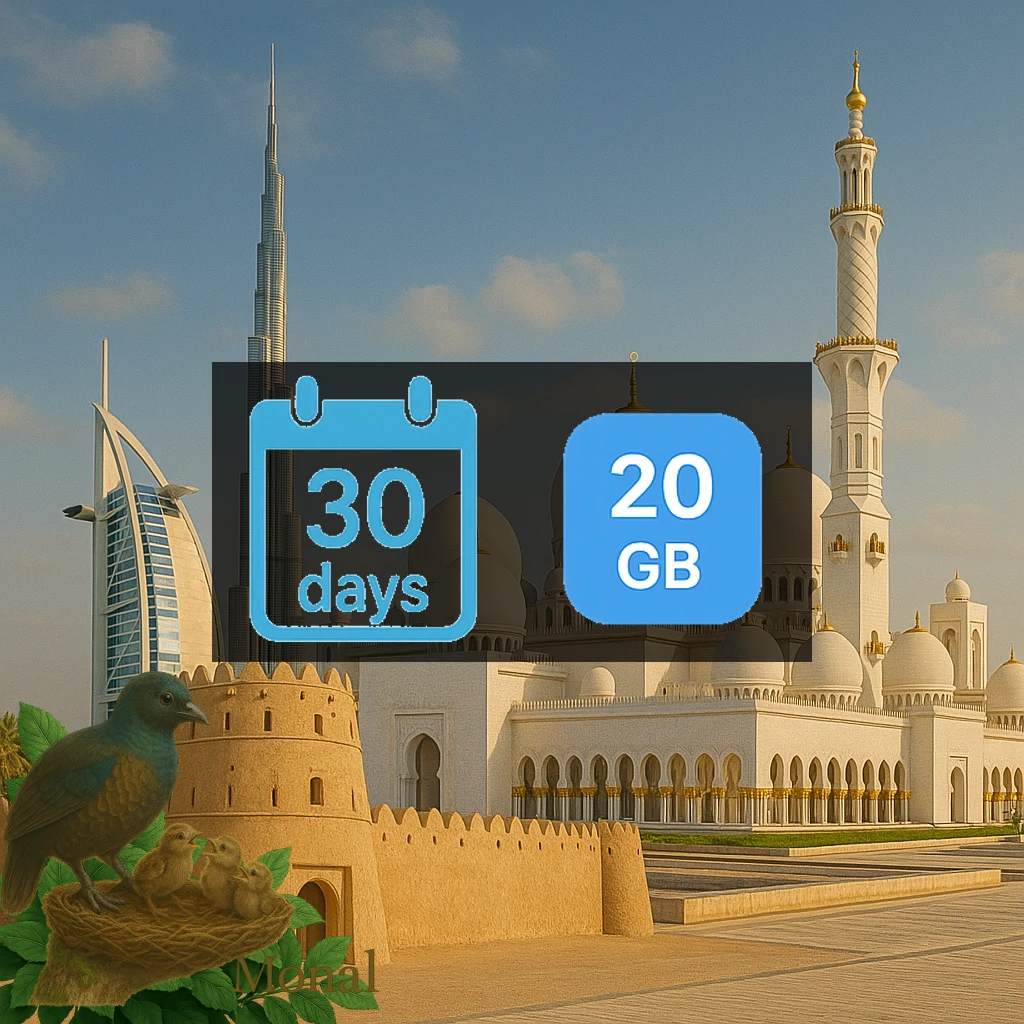 United Arab Emirates 20GB 30Days Get 20 GB of high-speed data for your travel needs. Perfect for travel in United Arab Emirates. Valid for 30 days once activated. You have 180 days to activate after purchase. Enjoy 3G/4G/5G network speeds for fast and reliable connectivity. Connects via Etisalat network for reliable coverage. Supports top-up options to extend your data when needed. Instant delivery via email - no physical SIM required. Simply scan the QR code to get connected.
