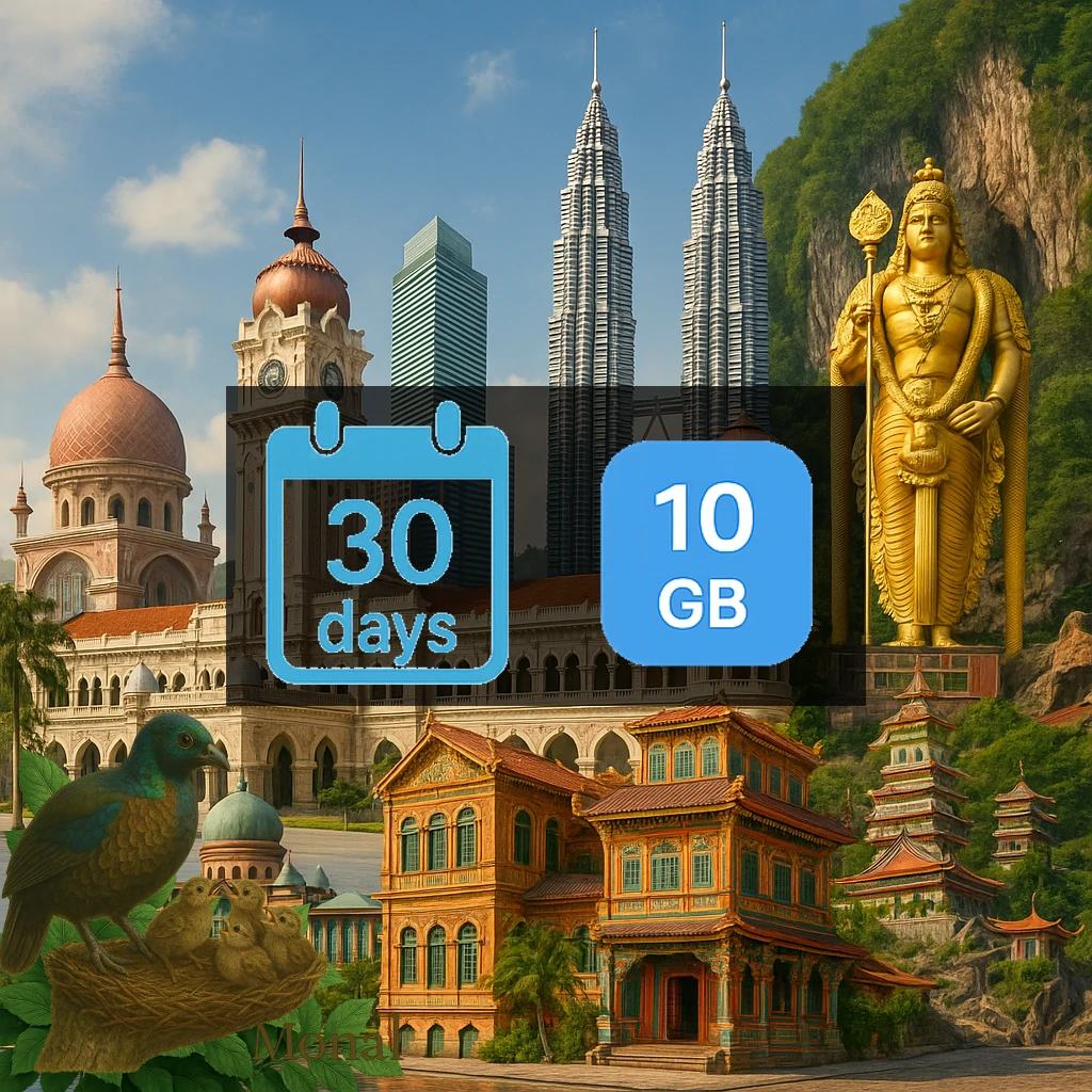 Malaysia 10GB 30Days Get 10 GB of high-speed data for your travel needs. Perfect for travel in Malaysia. Valid for 30 days once activated. You have 180 days to activate after purchase. Enjoy 3G/4G/5G network speeds for fast and reliable connectivity. Connects via CelcomDigi network for reliable coverage. Supports top-up options to extend your data when needed. Instant delivery via email - no physical SIM required. Simply scan the QR code to get connected.